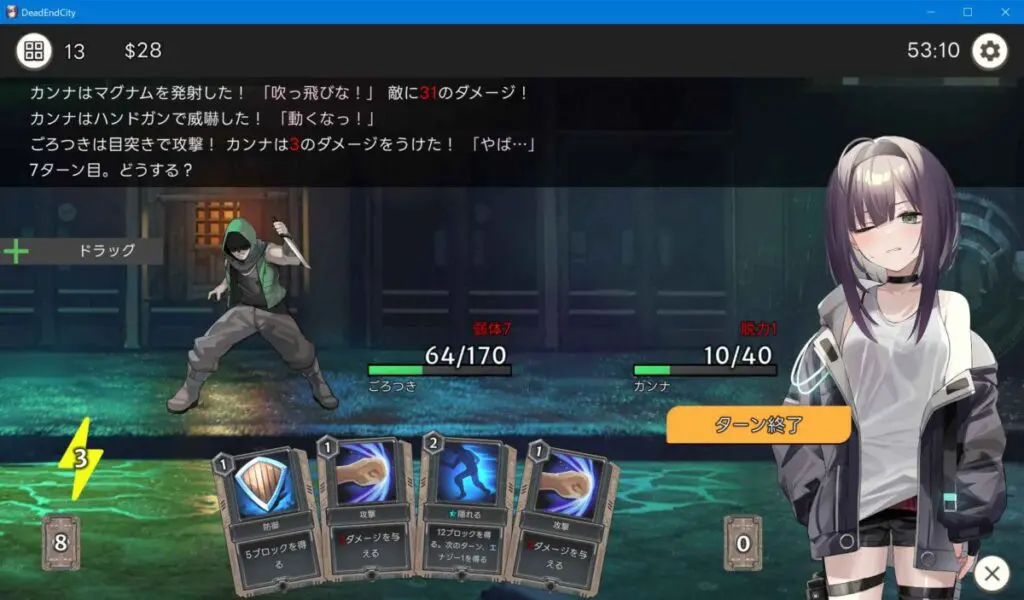 【体験版レビュー】Dead-End City 4k超高解像度の敗北エロあり!攻守のカードを駆使して敵を倒せ!