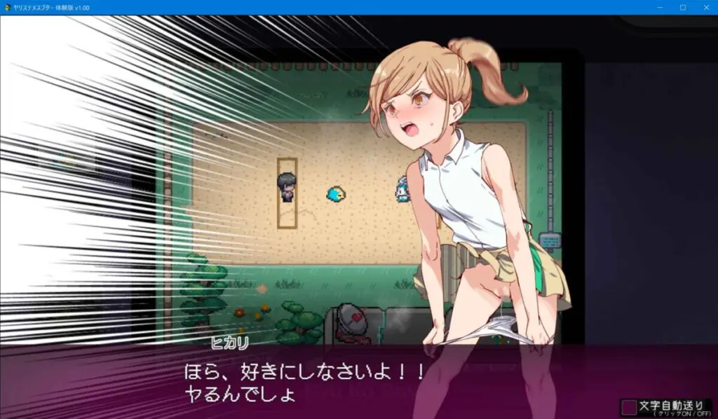 そんな状況に困惑する主人公だが、ヒカルは『勝ったらセックスをする』と言い出すし、相棒のケチープも『勝・即・犯』とヒカルと同じ認識な。その場に出くわしたヒカルの母親ですら当然だと、まったく不思議に思っていない。